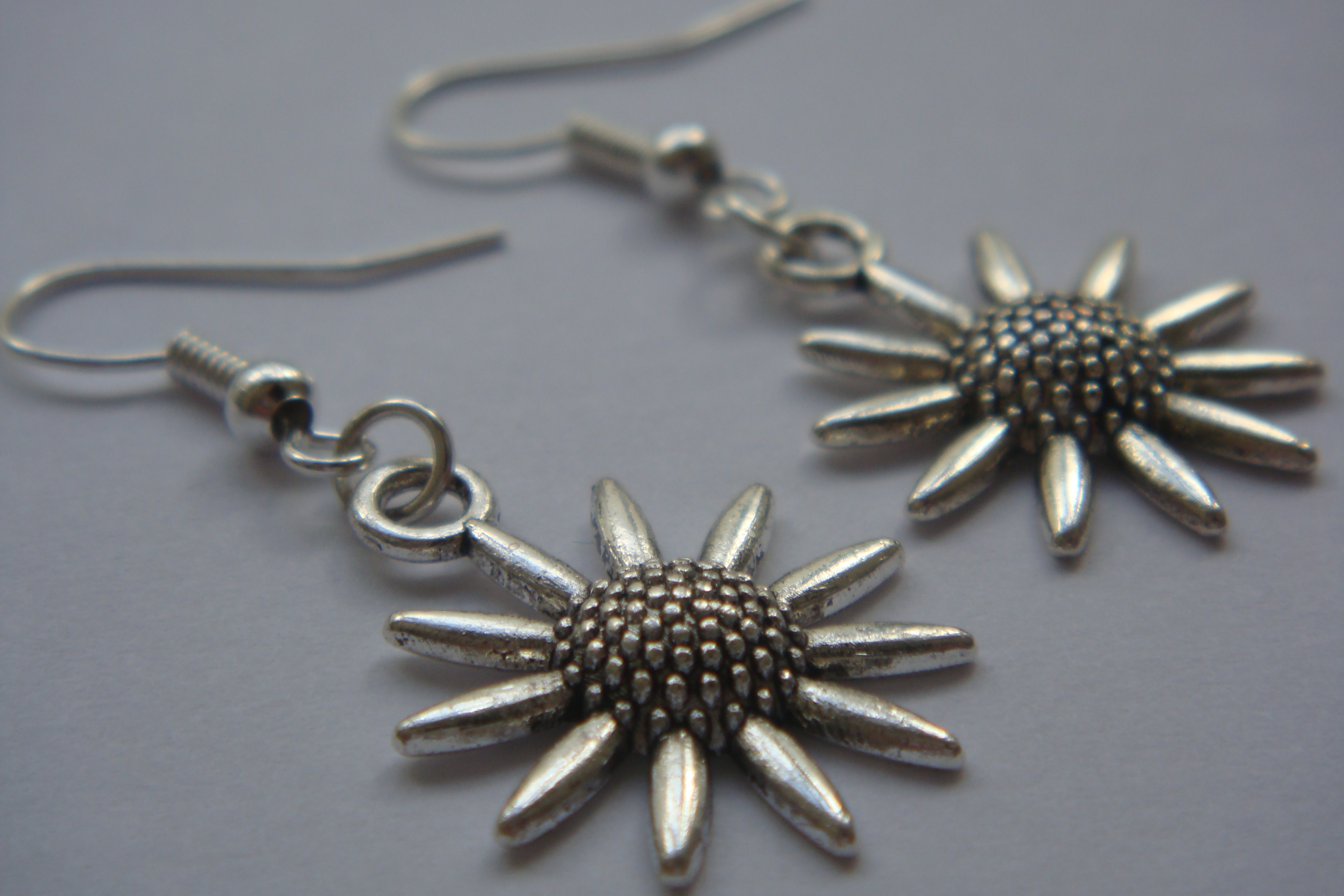 Silver earrings, flower earrings