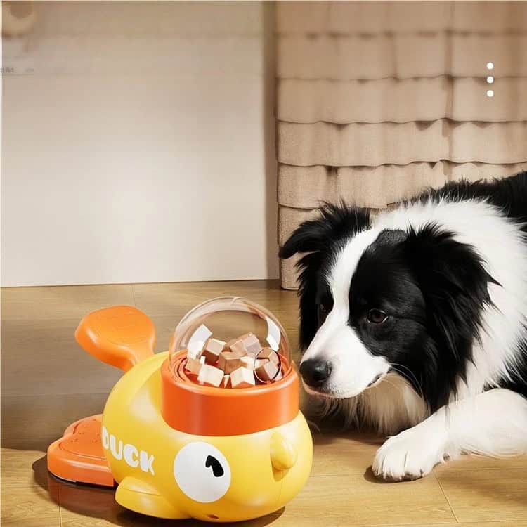 Comedero interactivo con forma de pato amarillo para perros y gatos